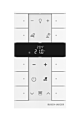 Toetsfunctie: schakelen/dimmen/jaloezie/waarde zenden/lichtscènes e.a. Voor aansturing van verwarmings-, ventilatie- en fan-coil-aktoren. Master-/slavebedrijf. De ventilatorstand kan op handmatig of automatisch bedrijf geschakeld worden.