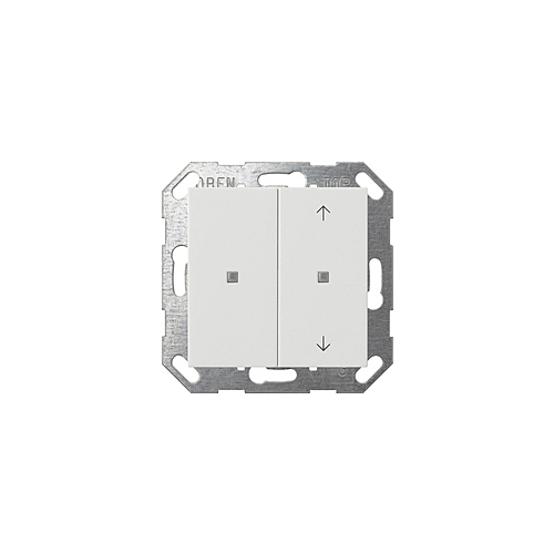 Gira KNX drukcontact. Wip 2-voudig onbedrukt en pijlsymbolen uitgevoerd in de kleur zuiver wit glanzend.
