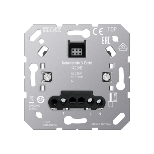 Jung neventoestel 3-draads. Voor afdekkingen art.nr.: .. 1700 .., .. 1701 .., .. 1702 .., .. 1750 D .., .. 1751 BT .., .. 17180 .., .. 17280 .., .. 17181 .., .. 17281 .., DWPM 17360 ..