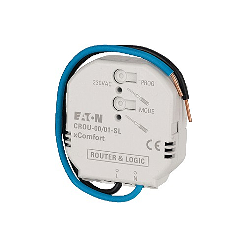De voeding wordt via het net verzorgd. De router kan door zijn diepte van maar 18 mm eenvoudig ingebouwd worden in een muurinbouwdoos, centraaldoos, aftakdoos, boven een verlaagd plafond of direct in een apparaat/armatuur.