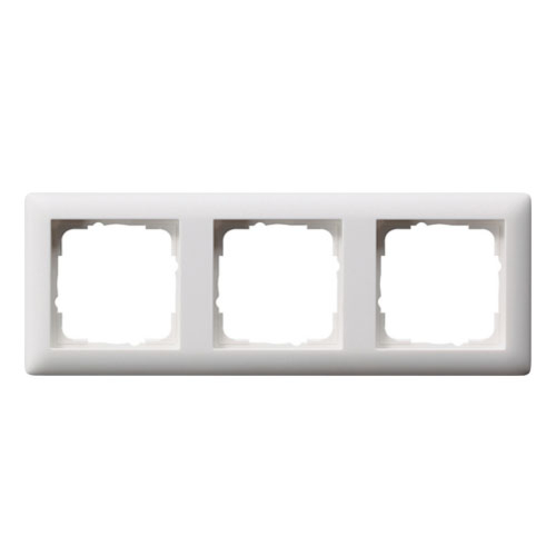 Deze Gira afdekraam uit de serie Standaard 55 is 3-voudig. Deze breukvaste afdekraam is eenvoudig toepasbaar en geschikt voor Gira Systeem55. Deze is uitgevoerd in de keur zuiver wit mat.