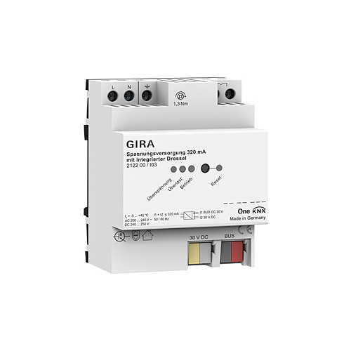 OneKNX DIN-rail voeding 320 mA smoorspoel [212200] Voeding 320 mA met geïntegreerde smoorspoel voor Gira One en KNX Gira One / Gira KNX DIN-rail