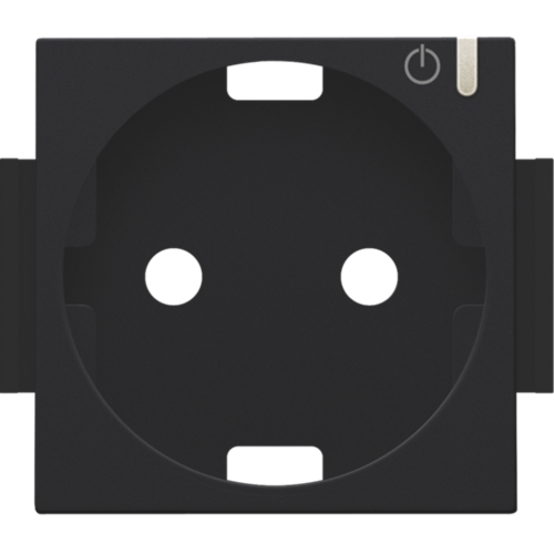 Afwerkingsset voor geconnecteerd schakelbaar stopcontact met randaarde en bedieningsknop. Uitgevoerd in de kleur black coated.