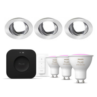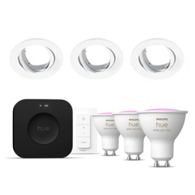 Bij DeDomoticaStore vind je een ruim assortiment aan slimme binnenverlichting van Philips Hue, waaronder dus ook de Hue spotjes. Hierdoor zit er ongetwijfeld ook voor jouw interieur een perfect Hue spotje bij! Denk bijvoorbeeld aan een vierkant spotje of een rond spotje met een wit, aluminium of zwart design. Of kies voor verschillende Philips Hue spots color. Hiermee kun je de kleur van het licht aanpassen naar elke mogelijke kleur die je maar kunt verzinnen. De inbouwspots met Philip Hue dienen dezelfde fitting te hebben, dit zijn de Philips hue inbouwspots GU10.