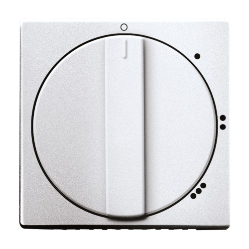 Busch Jaeger centraalplaat met draaigreep, met opdruk. Uitgevoerd in de kleur aluzilver.
